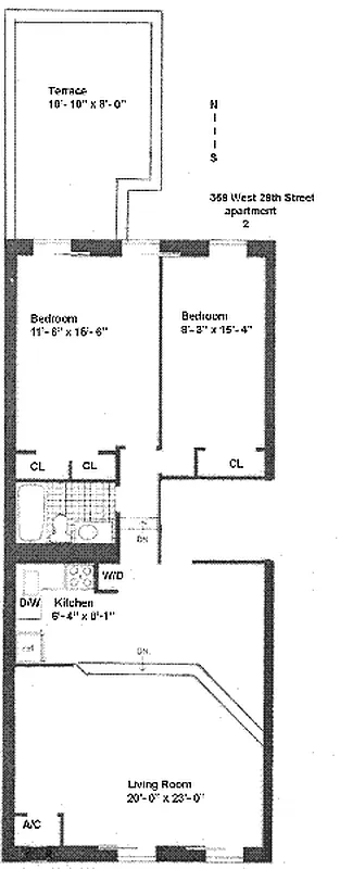 "Walk one flight up to this fantastic full floor, Prewar 2 bedroom, 1 bathroom apartment with a large terrace. This wonderful home has high ceilings, a sunken living room, a separate dining area and an open kitchen with a dishwasher. Other great features include central air conditioning, washer/dryer, hardwood floors and north and south exposures.