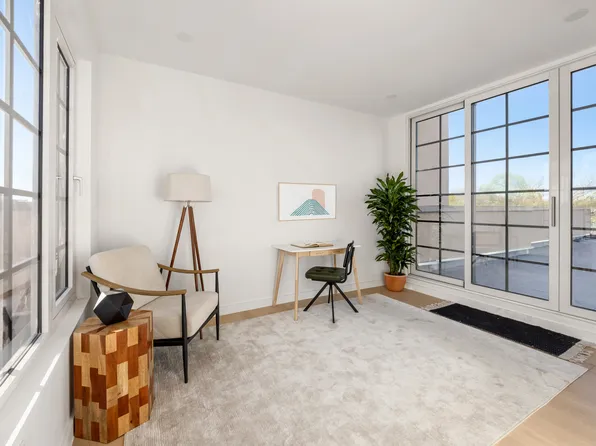 Welcome to this sanctuary on the park - 36 Eckford 6B is a light filled corner unit with floor to ceiling wraparound windows and city views! This unit has two beds, two baths, and two balconies, all only a block from McCarren Park. There is also a HUGE, private roof cabana with views galore included, and a deeded parking spot available across the street by separate purchase.