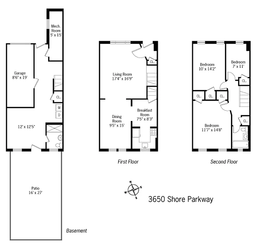brick one family duplex home features three large bedrooms, eat in kitchen,formal dining room,1/12 baths crown moldings, hardwood floors, walk in finished basement,pvt driveway one car garage, backyard patio, just one block from emmons avenue’s fine dining,shopping