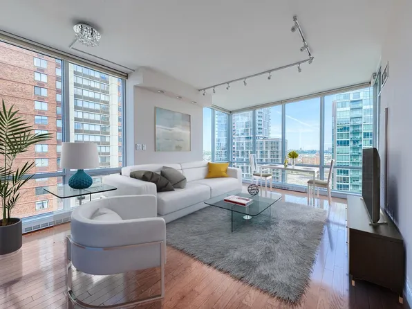 Beautiful 2Bed/2.5Bath duplex on top floor in elevator building on 1st and Newark Street. Hardwood floors, SS appliances, granite counters, dishwasher, microwave, outdoor deck with east facing views, and tons of closet space throughout the unit. Right across the street from Hoboken PATH station. Shared washer/dryer on same floor. Next to restaurants, bars, shopping, park and much more.