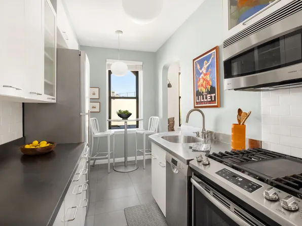 This fully renovated top floor home features an expansive great room opening to a 125 square foot private terrace with dramatic views to the downtown skyline, East River and beyond! Two walls of outward facing windows serve up southeastern and southwestern exposures for excellent light and air throughout.