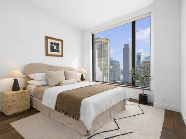 Please note that there is tenant in place till 12/31/2026. Motivated seller, all offers are welcome. Sunny Beautiful 2BR/2 Bath comes with amazing Manhattan view and Water view, Luxury High Rise building, lots of windows, spacious living space, 24HR doorman, amenities include Beautiful Roof deck, Sky Lounge with amazing water view and Manhattan view, Gym, Outdoor Garden, and additional resident lounge on the 5th floor.