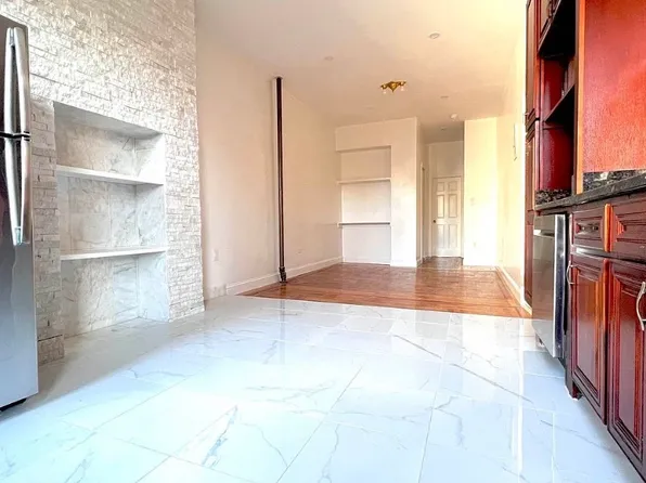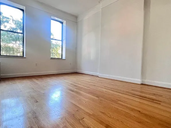 Spacious apartment has beautiful dark hardwood floors throughout and a loft like feel with 12 foot ceilings. Bedroom can fit a queen size bed a furniture. and has a double wide large closet with storage above it. There is a slip under the window to hold your AC unit and not lose any window light due to putting the AC in the window.