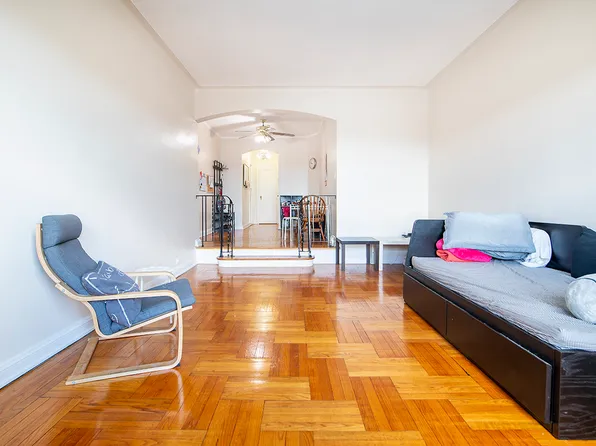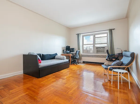 Large 2 Bedrooms, 1 Bathroom co-op. Vinyl tile flooring throughout apt, efficiency type kitchen. Lots of natural light. Building has an elevator, laundry room, recreation room and part time doorman. Located at the border of Woodside and Sunnyside Gardens. Walking distance to school, park, library, restaurants, shopping and pubs and park.