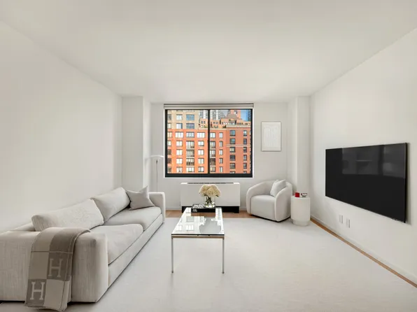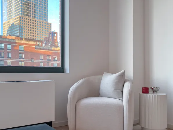 Welcome to Residence 28E — a high-floor, light-filled 1-bedroom with a smart, flexible layout and oversized windows that capture open sky views. A proper entry foyer with large closet and full-size washer/dryer sets the tone. The horseshoe kitchen features premium appliances, a gas range, and generous counter and cabinet space, perfect for home cooking and entertaining.