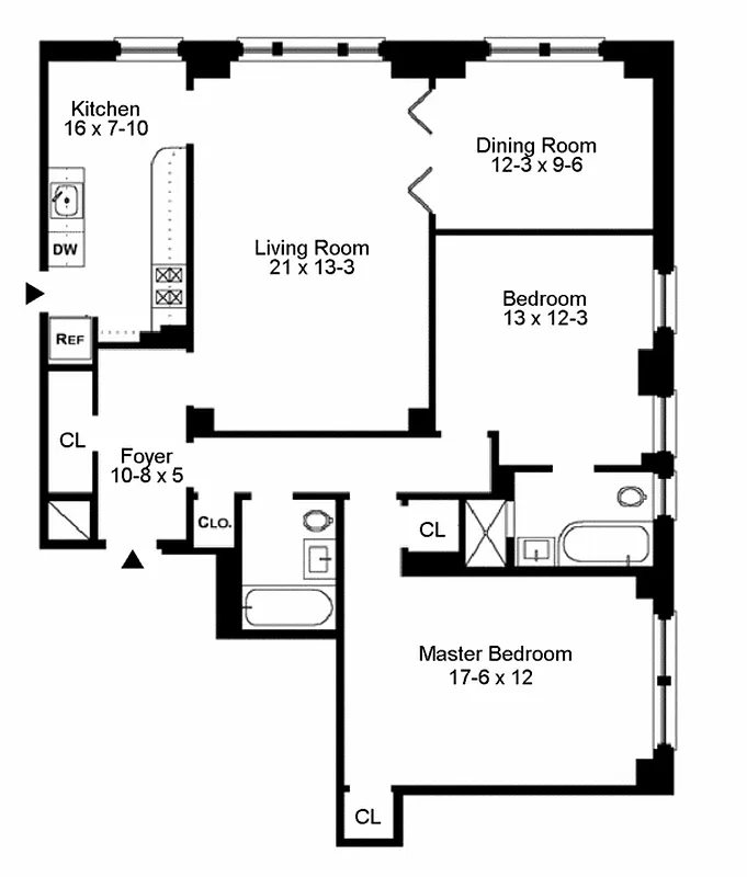 BACK ON THE MARKET. Come visit this very inviting pre-war home in a premier art deco building. The layout is perfect for entertaining. The large living room opens into an intimate dining room/library with French doors. The windowed eat-in kitchen has a banquette and ample room for someone who loves to cook. What gives the apartment its character and charm is the abundance of original details: 2 restored bathrooms that have the original tiles/fixtures, 9.