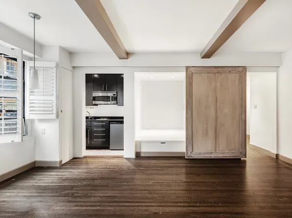 Full Studio in Midtown East, Renovated with Separate Windowed Kitchen, High Ceilings, Wood Floors, Faces West with Good Light and City Views.