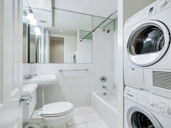 ABOUT THE APARTMENT: Stainless Open Kitchen, Dishwasher, Microwave, Sleek Fridge, Walk In Closet, Stackable Washer/Dryer, Designer Bath, Kohler Pedestal Sink & Toilet, Soaking Tub, Marble Finishes, Penny Tile Floor, Crown Moldings, Recessed Lighting Throughout, Great Closet Space