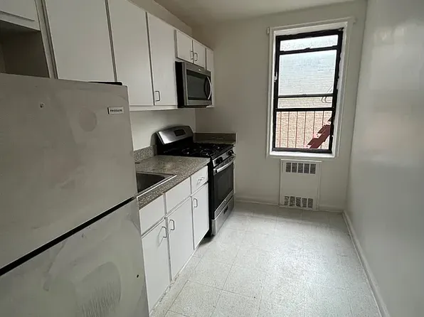 LARGE renovated apartment, large living room w/separate kitchen w/new stainless-still appliances including DW! Hardwood floors; Tailed bathroom & kitchen. AC in each room! Good closet space.
