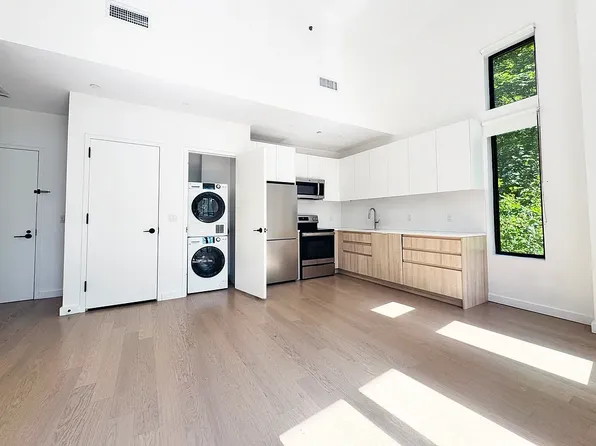 Massive 2 bedroom apartment features spacious living room with tons of natural light, an open kitchen with stainless steel appliances and a dishwasher, queen size bedrooms, abundance of closet space, sparkling windowed bathroom, hardwood floors and high ceilings.