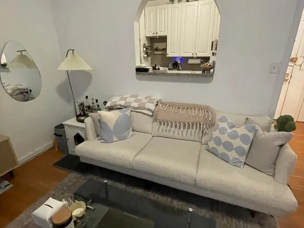 This apartment features beautiful hardwood floors, high ceilings, stainless steel appliances. The bedroom is generously sized, accommodating a full-queen size bed and a complete living room setup.