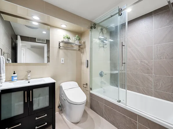 Enjoy northern and southern exposures as you move through a generous open layout. This spacious home has five closets, one of which is a large laundry closet featuring Bosch appliances.