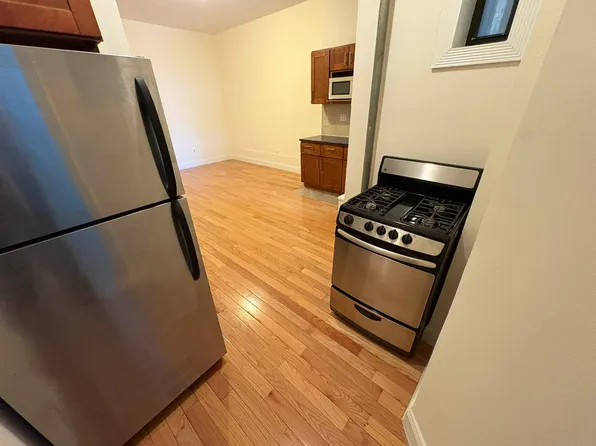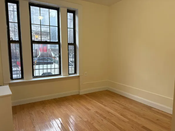 The unit has a great view of Hamilton Terrace. This unit is configured as one bedroom with closet, living room, kitchen, and a full bathroom with a tub. There is a decorative fire-place, high ceilings a lot of windows, and a washer/dryer in the basement.