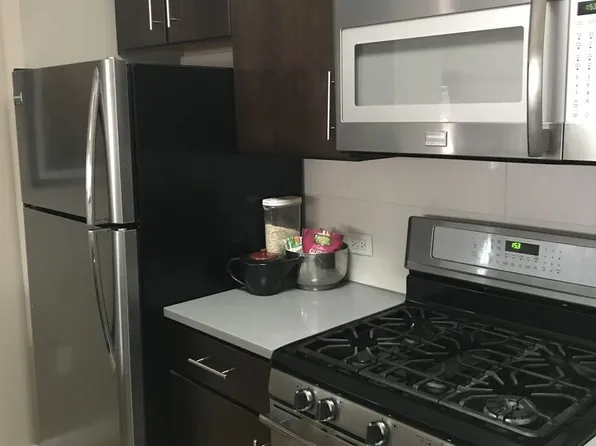 Choose open stairways or elevator to this spacious third-floor, 1 bedroom apartment with renovated kitchen, hardwood floors, natural light and great closet space. Bedroom easily fits a queen/king size bed, dresser & desk. Windows in all rooms (including kitchen and bathroom).