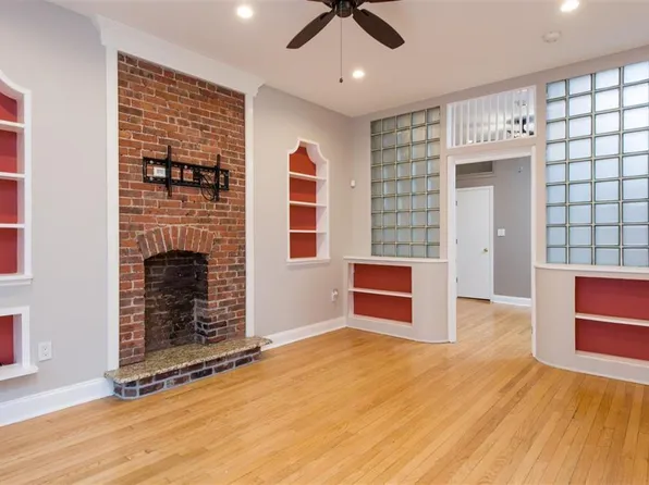First level open kitchen, hardwood floors,exposed brick and Large livingroom with high ceilings and Large picture windows.