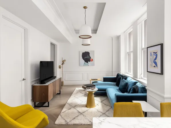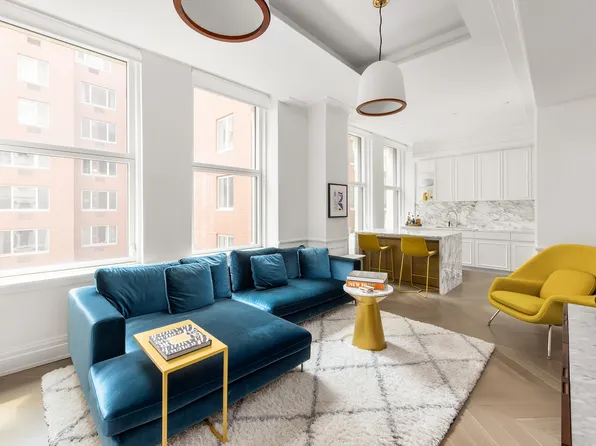 This expansive Soho loft, in a quintessential 1880s full-service building, showcases 11-foot ceilings, exposed brick walls, big East and West facing windows, and grand proportions while offering the utmost in clean, modern renovation. From the welcoming entry hall to the open plan living area and beyond, its gorgeous hardwood floors run throughout the space and a stylish and new open kitchen awaits your every culinary undertaking.