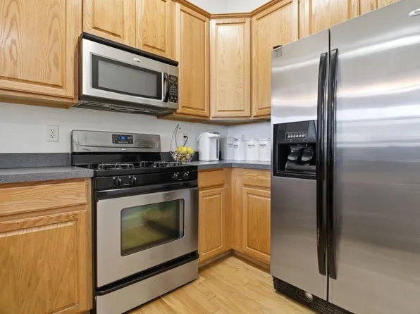 This beautifully renovated prewar apartment has high ceilings and preserved original details. The kitchen includes stainless steel appliances, granite countertops, a breakfast bar, and subway tiles. The bathroom has a large shower and generous storage. The bedroom has two full closets, and the living room gets plenty of natural light. Solid dark-stained oak floors run through the bedroom, living room, and hallway.