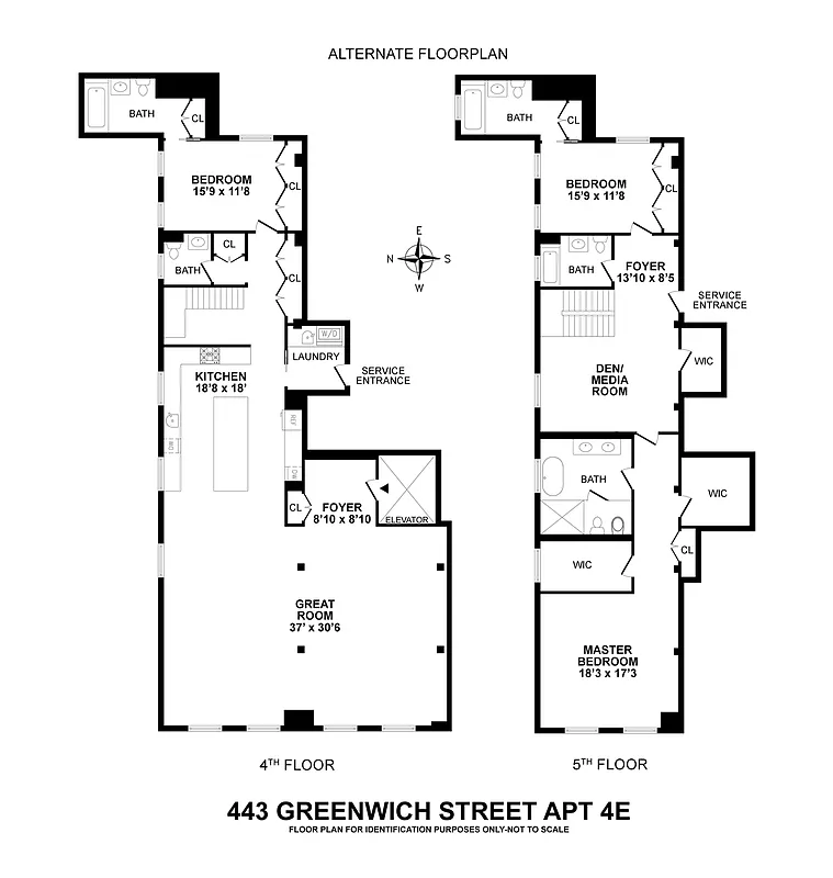 Welcome to 443 Greenwich! Apartment 4E is a 4,526 square foot duplex with four beds, four baths and a separate marble encased powder room.