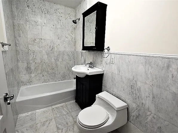 Full bathroom with wall to floor tiles