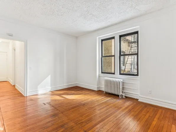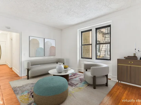 Elevated above ground level with serene privacy, this gracious prewar 2-bedroom at 45 Plaza St West offers a flexible corner layout with four living-room windows overlooking the building's landscaped garden—a rare Park Slope treasure offering residents a peaceful outdoor retreat. The home's generous proportions, separate bedroom wing, and classic architectural details create an inviting, comfortable setting with a true sense of arrival.