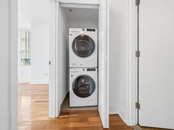 On the 32nd Floor is a Direct South Facing 1 Bed with stunning views, flooded with natural sunlight throughout the day. A very spacious layout that allows you to have a separate living room and dining area, while still fitting in a work from home space or reading nook. The kitchen has ample cabinet space, a gas-powered oven and a dishwasher. Hardwood floor throughout and 4 closets including a large walk-in closet rounds out your beautiful new home.