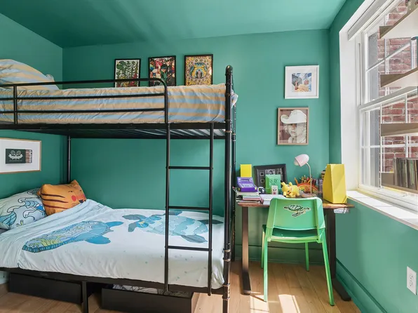 Located on a picturesque tree-lined street in prime Carroll Gardens is a rare opportunity to live in a stunning and thoughtfully renovated four-bedroom, two-bathroom duplex with a private entrance. Occupying the top two floors of a red brick townhouse built in the 1870s, attention to detail is evidenced throughout the home, marked by tin ceilings, two decorative fireplaces, wide plank heart pine floors, and the installation of a stained glass window in one of the bathrooms.