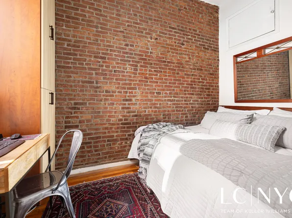 This beautiful home located one flight up features 13’ ceilings, hardwood floors, exposed brick throughout and new insulated windows. Relax in the large living room alongside a wood-burning fireplace with chic solid bronze tile, and enjoy the convenience of a separate flex space perfect for a home office, den or nursery with Poliform doors and floor-to-ceiling storage.