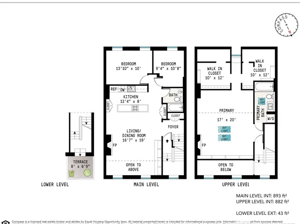 BOERUM HILL CONDO GARDEN DUPLEX. All fresh and light, the top floor of the condo with a private entrance is comprised of a large living room with working fireplace, spacious dining area, 2 bedrooms overlooking the garden and 2 bright bathrooms.