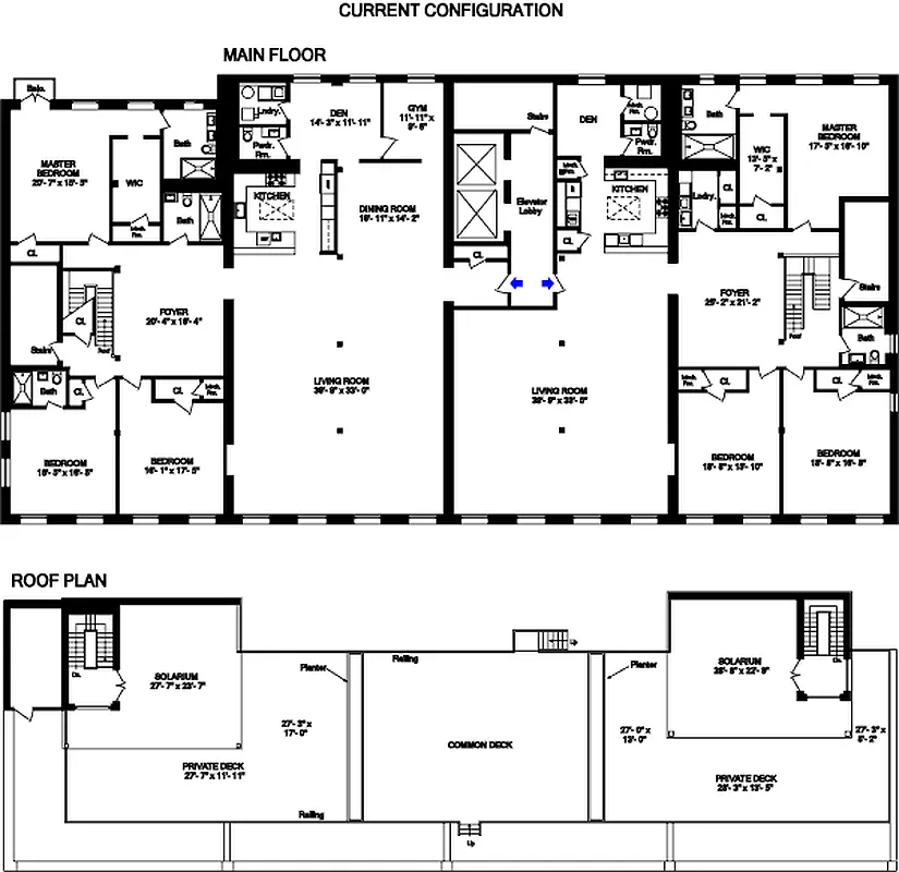 The quintessential NY penthouse loft, unparalleled in sheer proportion, finish, character, luxury & design. This space is outrageous! 2 contiguous PH units can be easily combined to create 10,500 sqft of living space plus a 2,000 sqft rooftop terrace. A sprawling architectural masterpiece, this home boasts 11’-13’ ceilings, 33 oversized windows, multiple skylights, 5-7 BRs, a rooftop solarium, 2 home offices, a gym, media lounge, solid oak flrs, 8’ solid core doors & Central Heat&AC.