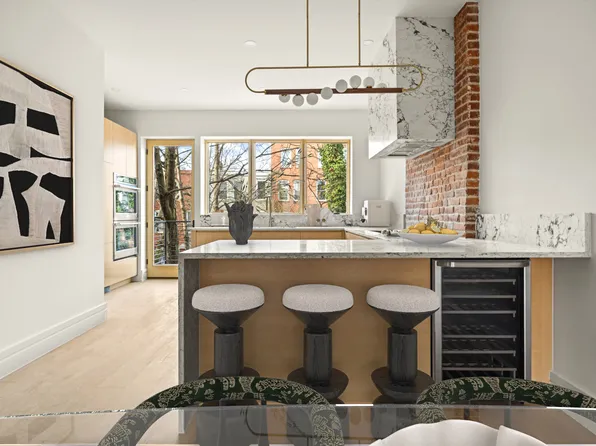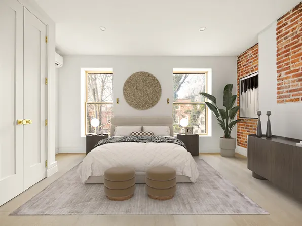 Behind a gated front patio and a classic brownstone facade-punctuated by soaring windows and ornate lintels-this historic property unveils a sun-drenched 4 full story brownstone with a triplex perched above a self-contained garden apartment with serious income potential and a separate basement.