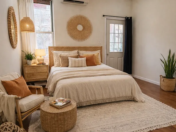 Virtually staged so you can see what you can do with the space! This 800 sqft floor through, two bedroom has an attractive open kitchen with shaker style cabinetry along with a stylish bath, all with excellent storage. Strip hardwood floors throughout. The bedrooms are spacious, comparable in size. Each with room for a queen sized bed and a large closet.