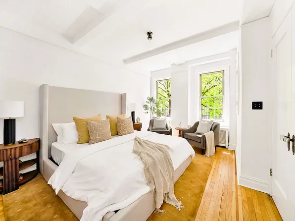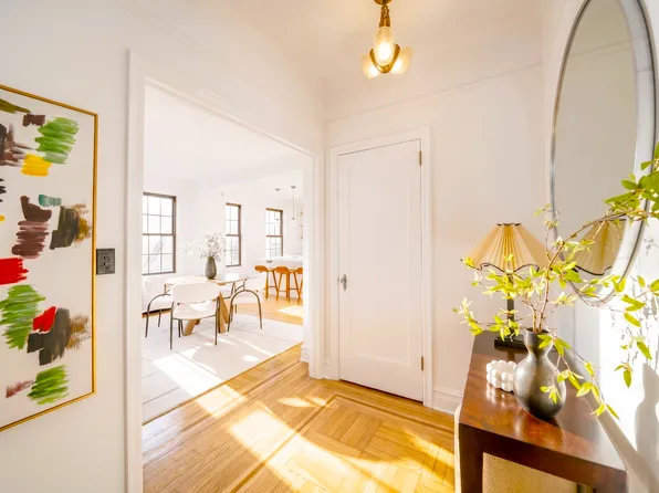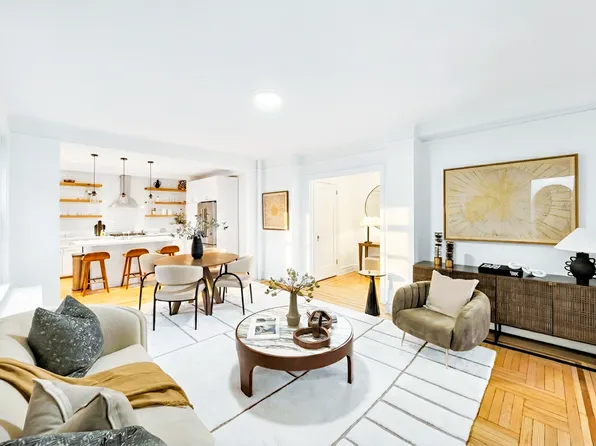Located in one of the most sought-after co-ops on the Upper West Side, this elegant two-bedroom, two-bathroom home is sunny and quiet. Tastefully renovated, with over 9-foot ceilings and abundant skylight, this charming residence boasts crown moldings, beautiful original hardwood flooring, and a washer/dryer. The gracious foyer leads to a spacious living and dining room—perfect for multiple seating areas and entertaining.