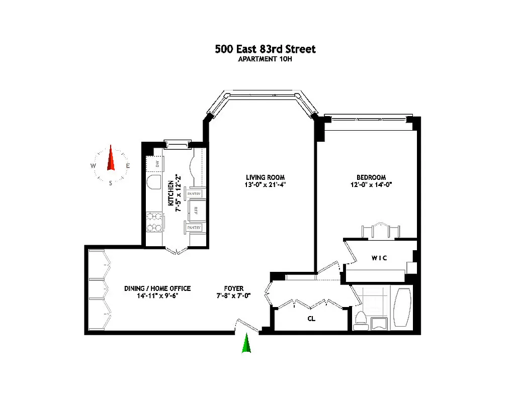 This apartment has open northern city views. The Living room 13'-0" by 21'-4" is bright and airy with an oversized bay window. The Dining Area, 14'-11' offers the option of a casual space including a home office. The windowed kitchen includes a spot to enjoy eating or working on your computer.