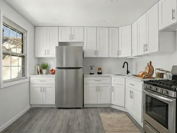 There are 3 large bedrooms with brand new carpeting protecting the beautiful hardwood floors underneath & a completely renovated full bathroom.