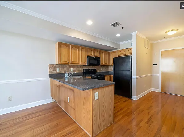 Private patio that will make the neighbors jealous. Quiet, courtyard facing oversized one bedroom apartment in desirable Prospect Hill building -- Open layout, granite counters, huge bathroom with dual sinks. Hardwood floors throughout. Laundry in unit and 1 parking spot included. Gym in building. Located in the heart of it all. Light Rail & NYC bus, ShopRite, the Monroe Arts Center and Hoboken's newest and largest park.