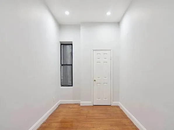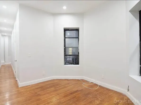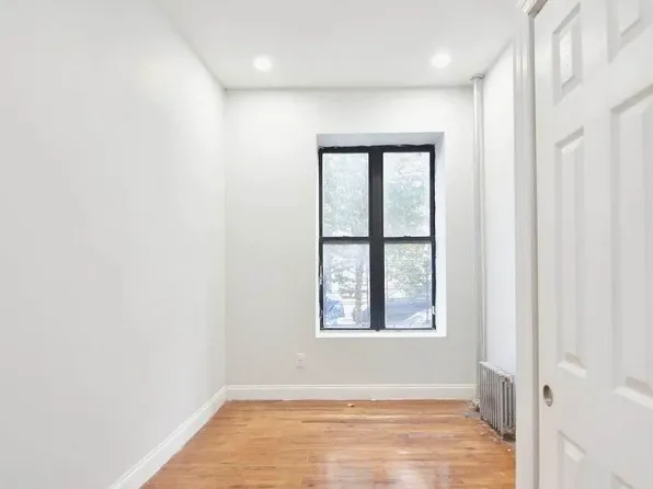 Junior 4 two bedroom in a small walk up property in the heart of Hamilton Heights. This unit has wood-like laminate floors throughout, walk thru living/bedroom separated by glass pane French doors, with all windows facing south.