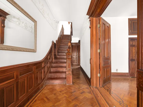 EXTREMELY RARE Opportunity to own a Stunning, North Slope, 4 Story, 2 Family Brownstone with a DEEDED Parking Space!! Currently configured as a 5 bedroom, 2.5 bath owners triplex and a large one bedroom, Garden rental, this ideal layout offers tremendous space and income potential. Magnificent original 1880's detail runs throughout the house beginning with the beautiful floor to ceiling pier mirror and staircase in the entry foyer.