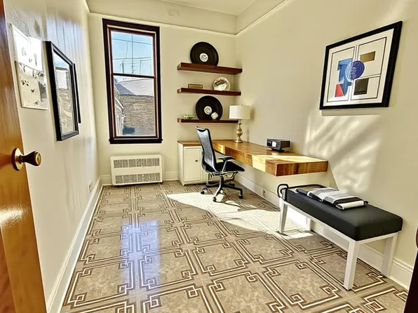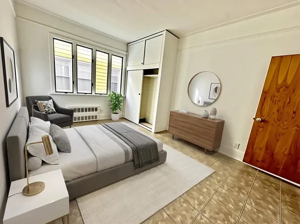 This residence features wood flooring, a chef’s kitchen with wood cabinetry, and plenty of closet space. The apartment basks in natural light with many windows for fresh air and sunlight throughout.