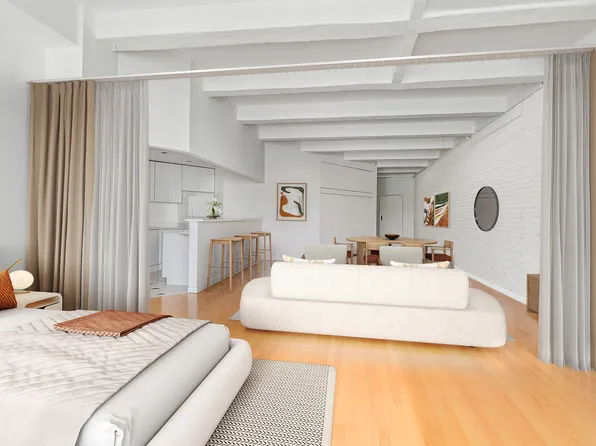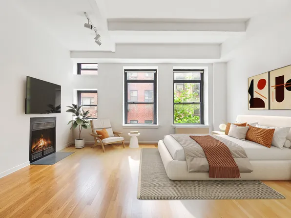 Instantly feel the warmth and spaciousness of this classic Soho loft the moment you walk into the combined living and dining area, where over-sized, updated double-paned windows wash the room in sun as they soar upward to reach 12-foot ceilings. This thoughtfully renovated, flexible home is perfect for entertaining large groups or an intimate gathering.