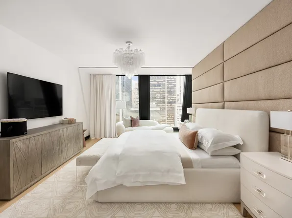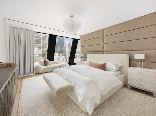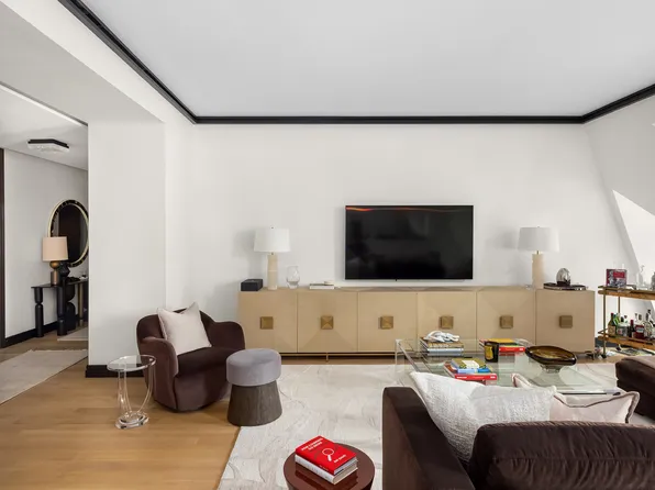 This stunning half-floor two-bedroom residence overlooks Fifth Avenue and boasts iconic Manhattan skyline views to the north, south and east experienced through six arched 10' by 10' windows. The gracious floorplan features an entry foyer and a corner living /dining room with an open chef's kitchen.
