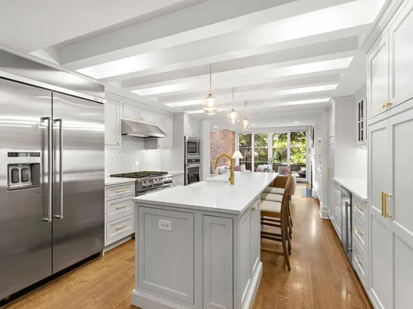 This one of a kind gut-renovated home offers an expansive and private layout, with 14 ft beamed ceilings, two skylights and tremendous natural northern and eastern light.