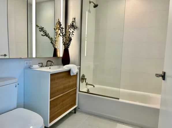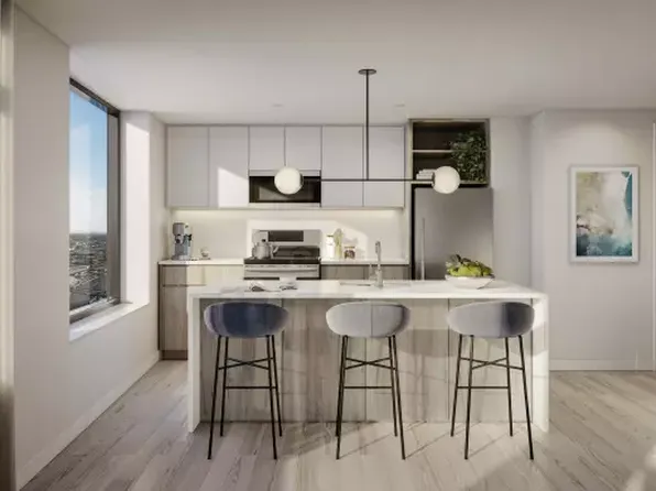 Bright and airy 2 bed, 1 bath apartment featuring a spacious living area with fantastic views of the East River and Hunter's Point South waterfront. This home also features a sleek linear kitchen, ample closet space, and northern exposure. Gross Rent $5195.