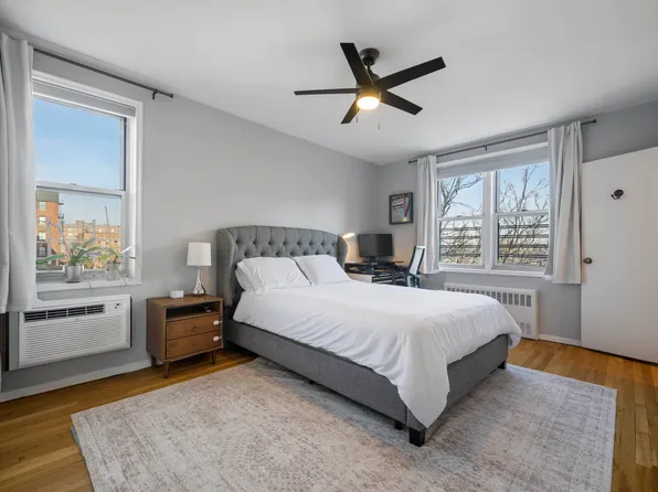 This top-floor, sun-drenched, spacious, and beautifully renovated two-bedroom, two-bath corner apartment at The Stuart House offers the perfect blend of comfort and style. The renovated galley kitchen features high-end fixtures and finishes, stainless steel appliances, a window, an under-mount stainless steel sink, soft-close cabinetry, quartz countertops, a subway tile backsplash, and abundant storage.