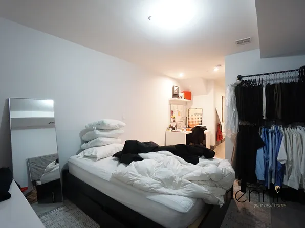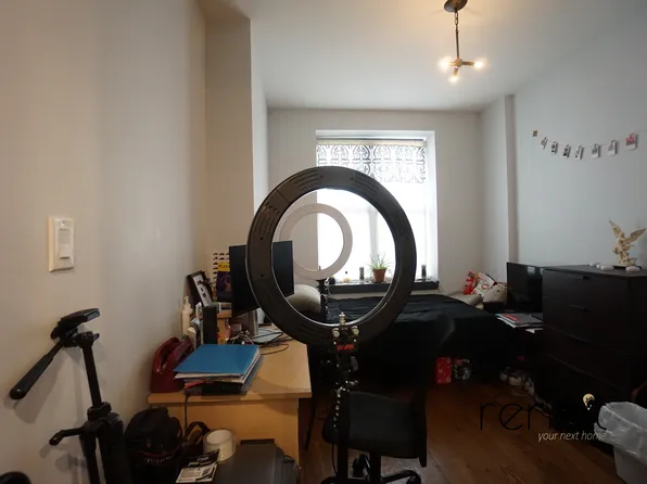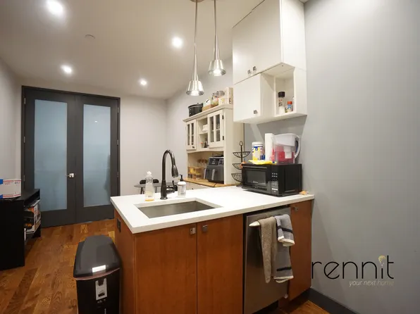 The apartment features 2 large private bedrooms with closets , and 3rd room smaller br or home office, all of which have windows. There is an open kitchen /living area.