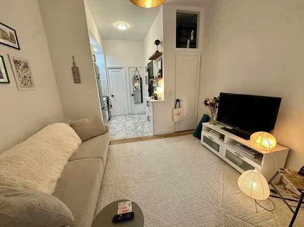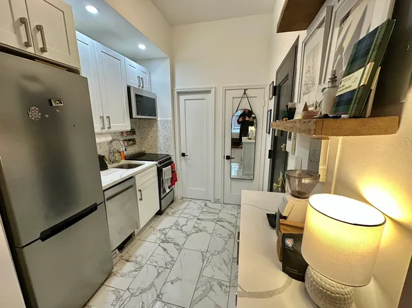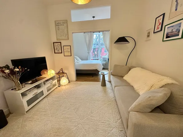 Welcome home! On the second floor and in the back of the building, this corner 1-bedroom features oversized windows, high ceilings, a non-working fireplace, and a windowed bathroom.