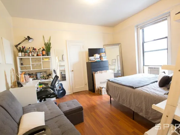 Renovated beautiful large studio with seperate living / dining areas - in quiet & friendly walkup building – exposed brick – high ceilings – tons of light – hardwood floors – stainless steel appliances – wood double glazed windows to street – fully sound proofed – laundry in building – super in adjacent building – CCTV – steps to central park and Harlem nightlife – 2/3 train express downtown – close...