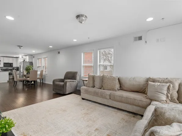 This young townhouse is fantastic with its 3 bedrooms, 2 full and 2 half bathrooms, open floor plan, and lots of natural light from being situated on a corner lot on a quiet street. Not a typical duplex layout. The 2-car garage, finished walkout basement, and beautifully landscaped backyard are wonderful features. The first floor offers a large family room, wet bar area, dining room, and open eat-in kitchen with an outdoor patio.