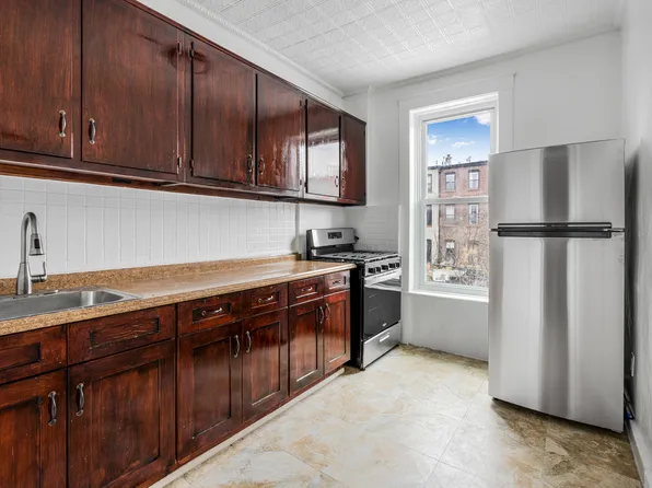Welcome to 547 Throop Av apt 3B! This top renovated 2BR 1BA is rich with top-of-the-line finishes. Located in prime Bedford-Stuyvesant, you are only a 4-minute walk from the C train at Kingston-Throop. Unit 3B has a nice eat-in kitchen that features quartz countertops and stainless steel appliances including a dishwasher. The apt boasts hardwood floors, exposed brick, two large bedrooms, one equipped with a Murphy bed, and an abundance of natural light facing east.