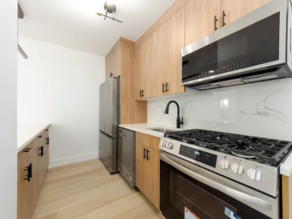 Beautifully updated 4-bedroom apartment featuring modern finishes. The home offers wide-plank wood floors throughout, exposed brick accents, and an airy living/dining space that flows into a renovated chef’s kitchen. The kitchen includes dark espresso cabinetry, granite countertops, stainless-steel appliances, a gas stove, dishwasher, and a large island perfect for cooking or entertaining.