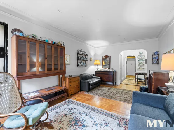 55 EAST 190 STREET APT. 24 FORDHAM MANOR Studio / JR 1 BED SPONSOR UNIT in a distinguished Art Moderne elevator co-op attributed to George Gottlieb Miller, Architect (F/K/A Miller & Goldhammer) ca. 1941. Approx. 455 s/f w/ separate Entry Foyer, windowed Kitchen & Bath w/ separate dressing area, windowed Sleeping/Dining Alcove. 2nd Floor, quiet, east-facing (side) exposure. Adjacent to beautifully restored Saint James Park.